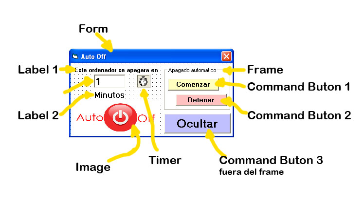 Frame : Backcolor = Blanco , Caption = Apagado automatico